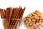 Etwas zum Knabbern? Salzstangen, Wasabi- und Erdnüsse servieren wir nach der Hauptspeise.